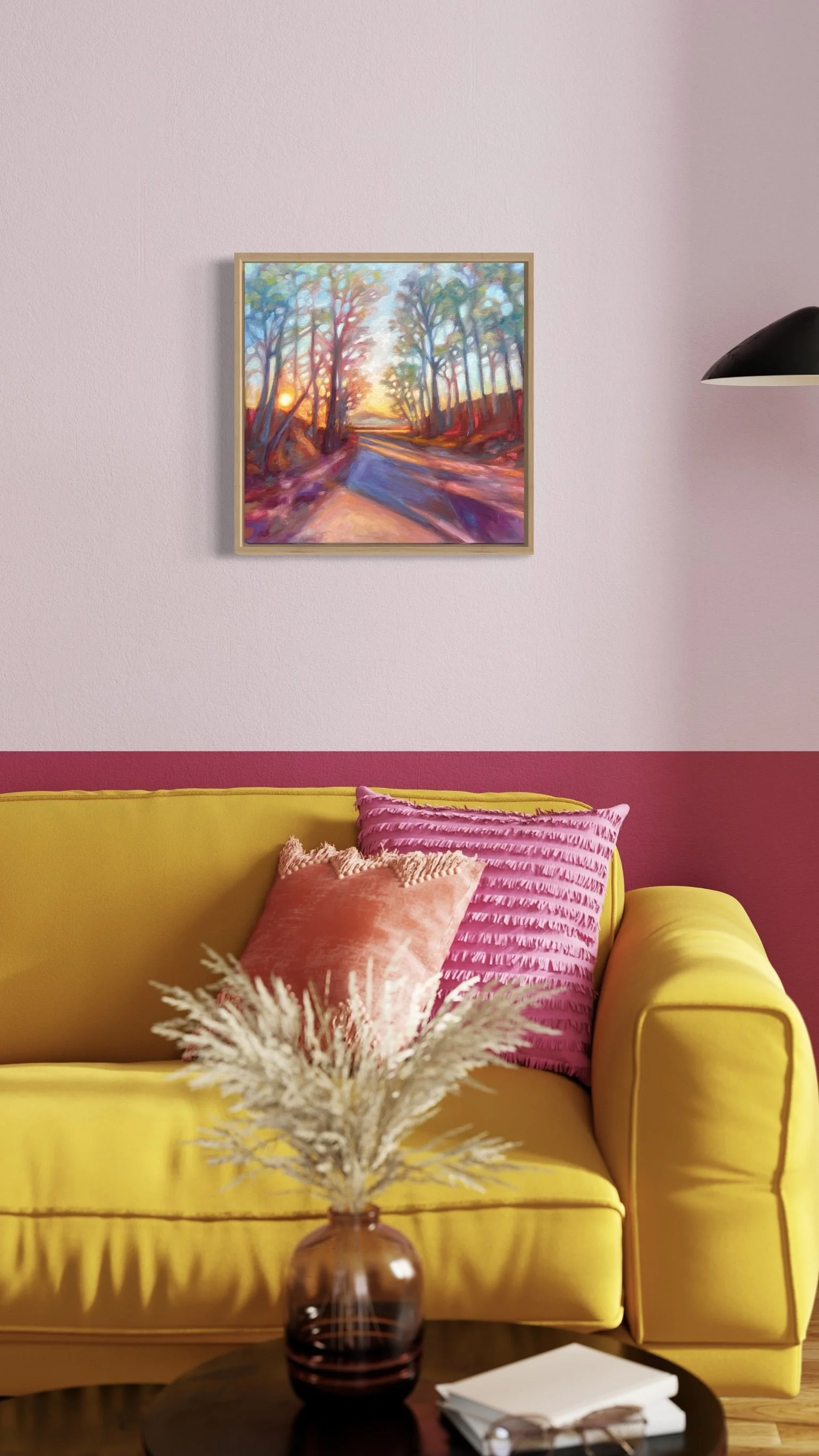 This landscape study is all about exploring new paths. The sunlight peeking through the trees and the shadows it casts playfully invite you to see what might be around the corner. Painted on a 1.5” canvas with the image wrapping around the edge.